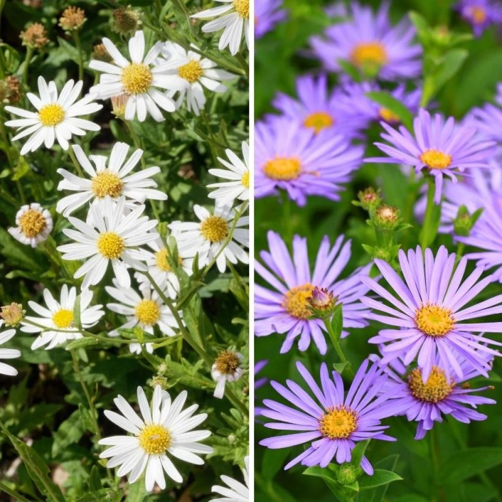 On pourra placer les Kalimeris de ce duo en bordure de massifs, en intercalant les deux variétés ou en les mélangeant avec des . Leurs floraisons souligneront la silhouette de plantes plus grandes telles que les phlox paniculés, et . Pour un effet sauvage, mariez-la avec les , les et les Vous pouvez aussi utiliser ces Kalimeris pour embellir le pied d’un rosier arbustif.