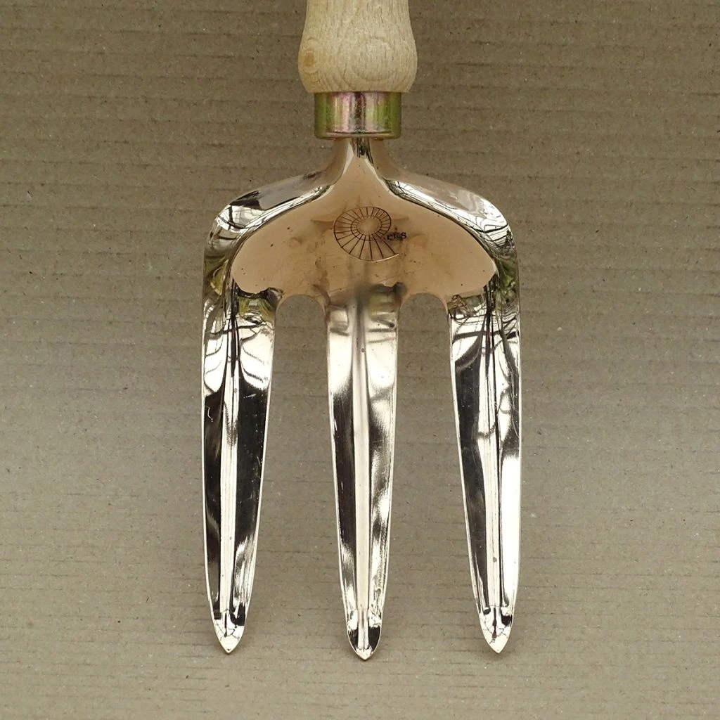 La fourche à fleurs en cuivre, grâce à sa petite taille est un outil idéal pour le travail superficiel de la terre dans les jardinières, les pots ou les massifs. Utilisez-la pour griffer et retourner votre terre en surface, aérant ainsi la couche superficielle. C’est un outil efficace pour râcler la surface afin de déterrer les souches de mauvaises herbes. Si le sol est meuble en profondeur, effectuez la plantation de vos bulbes, rhizomes ou vivaces et annuelles en godet en creusant rapidement des trous avec sa tête à 3 griffes.