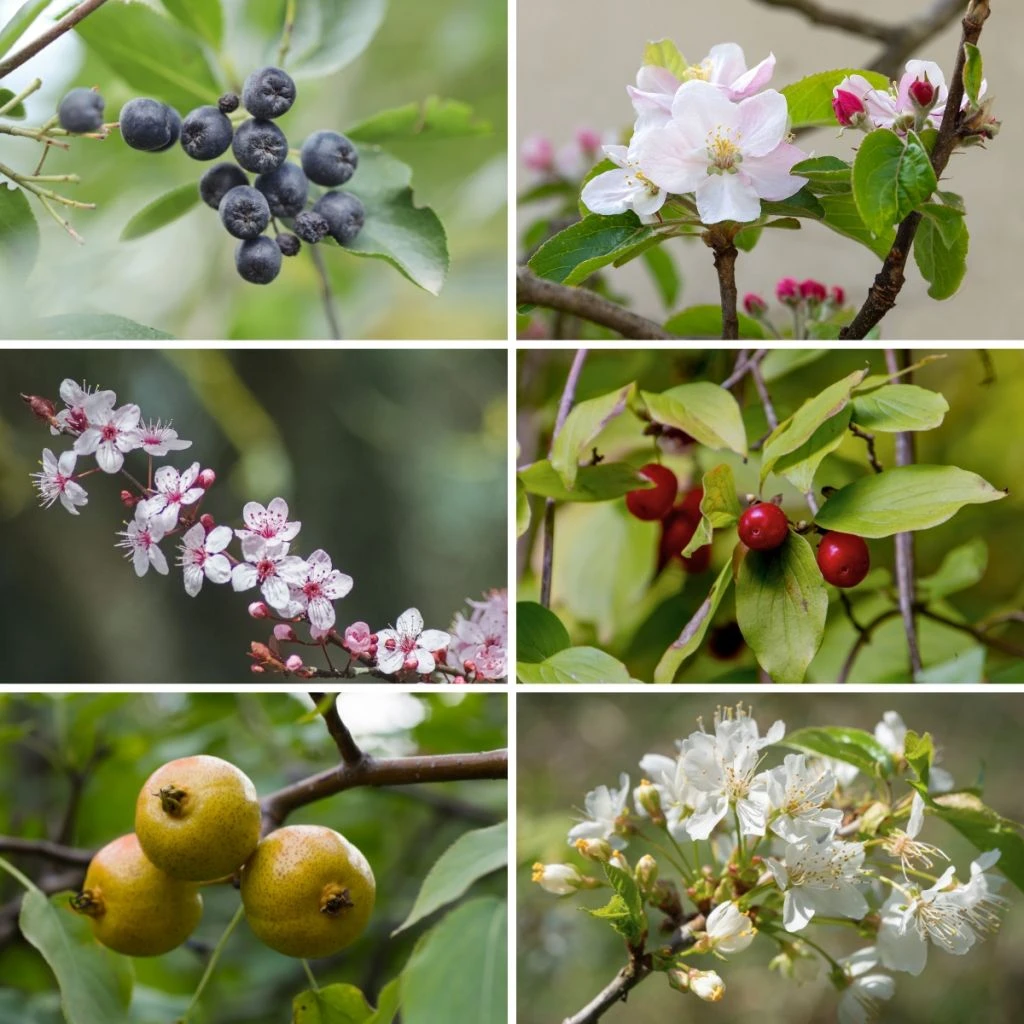 1 x Poirier sauvage – Pyrus pyraster : un arbre vigoureux de 8 à 10 m, offrant une floraison blanche au printemps et des petits fruits décoratifs verts à jaune-brun à l’automne, très appréciés de la faune.