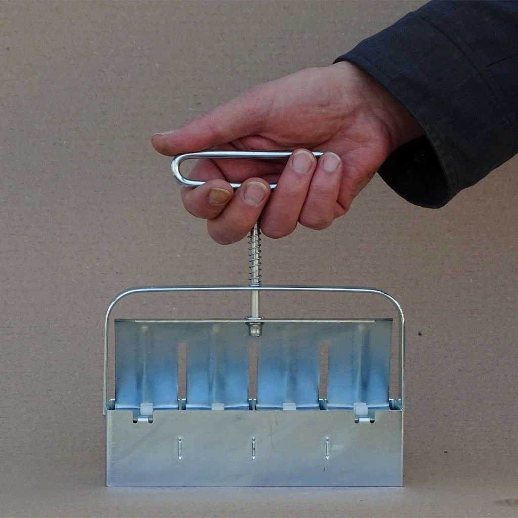 Ce presse mottes en acier galvanisé est un ustensile à piston qui permet de créer facilement 4 mottes de 50 mm en tous sens, en un seul geste, sans utiliser ni pots ni godets. Il s’utilise avec du terreau spécial semis et mottes. Les mottes créées sont des cubes de terreau pressés par l’outil. Malgré les apparences, ces petits cubes de terreau compressé sont solides, ils ont une bonne tenue et se repiquent sans difficulté. Disposez les mottes sur un plateau ou une table de rempotage. Lorsque les plants sont assez vigoureux, prenez directement la motte et plantez-la au jardin ou dans le carré potager. Cette technique, qui évite de déranger les jeunes radicelles, limite également le stress lié à la transplantation.