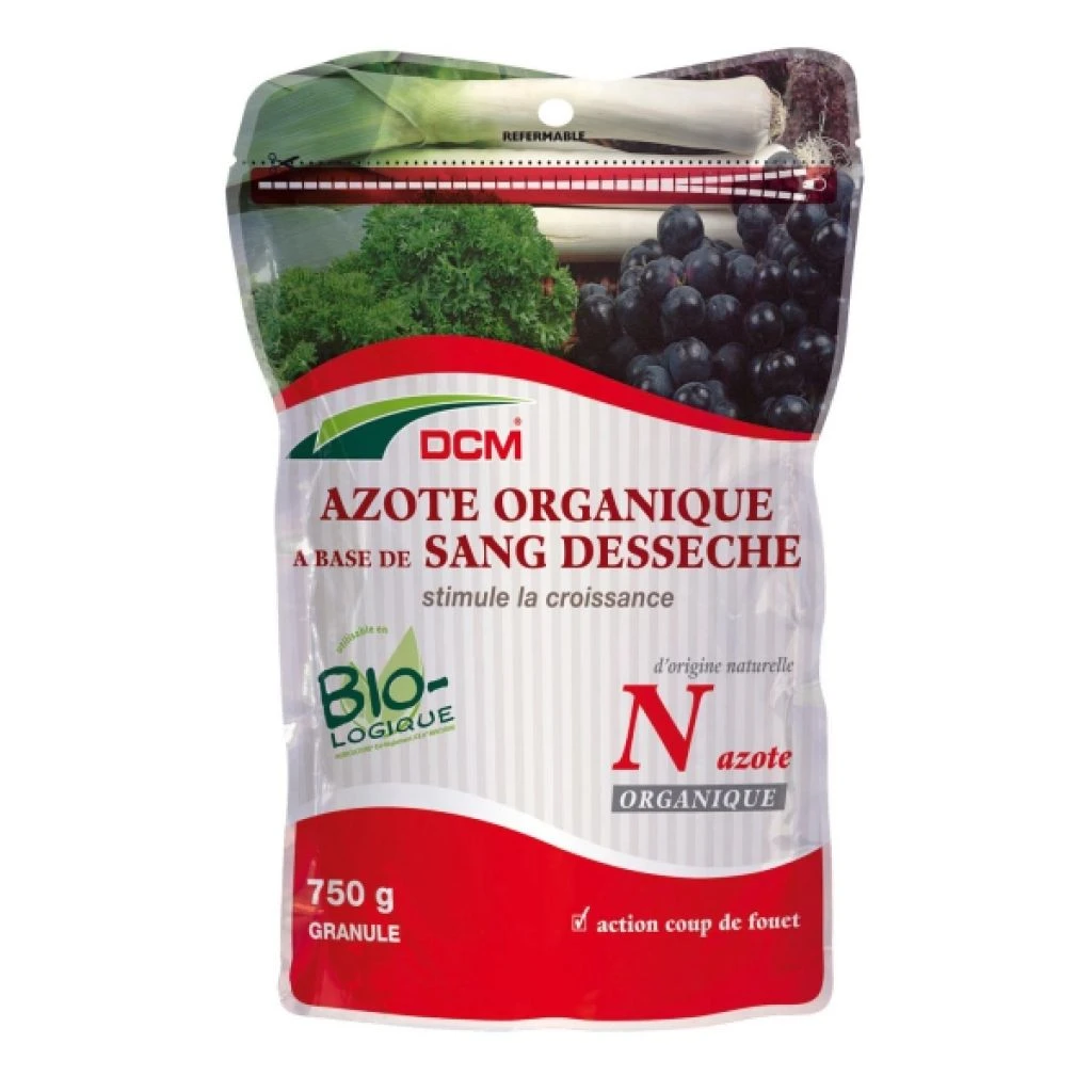 Azote organique à base de sang desséché est une source naturelle d’azote, pour une croissance progressive et étalée dans le temps. Il convient pour les légumes feuilles et arbres fruitiers.