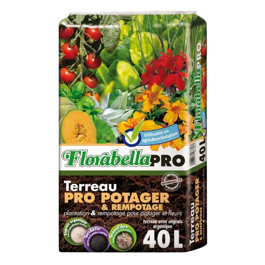 Le terreau Klasmann Florabella Pro Potager et Rempotage est un substrat de qualité professionnelle accessible à tous les jardiniers. Elaboré à partir d’ingrédients innovants et de première qualité, autorisé en agriculture biologique, ce substrat a été conçu pour améliorer la structure du sol et son équilibre biologique, favoriser la reprise des végétaux et favoriser la floraison comme la production de fruits. Il est particulièrement recommandé pour la plantation, le rempotage et le semis de toutes les fleurs ou plantes potagères.