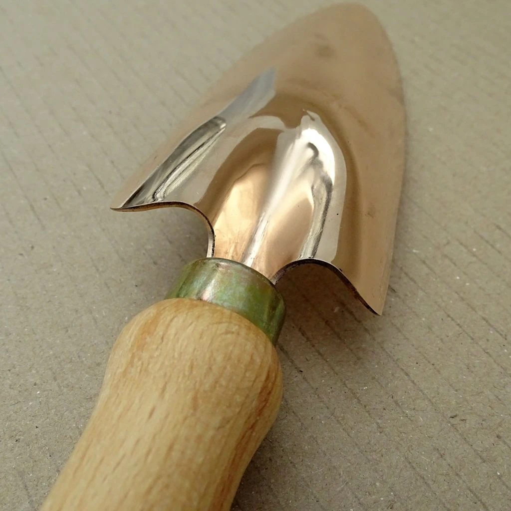 Les outils en cuivre, sont légers, facile à manier et non magnétiques. Inaltérables, ils ont d’avantage de ne pas s’émousser, nul besoin de les affuter. Lors du travail de la terre avec un outil en cuivre, vous y apportez des oligo-éléments qui influencent positivement l’hydratation de la terre. Les outils en cuivre, d’une longévité extrême sont les fidèles compagnons de leurs propriétaires des décennies durant.